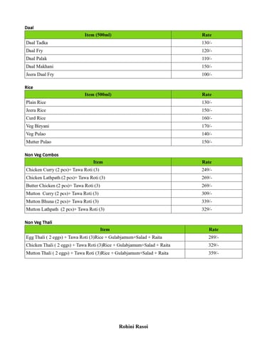 Whether you're planning a family dinner, or simply craving delicious veg and non-veg home-style meals — we’re just a click away. Let Rohini's Rasoi treat you to mouthwatering food that’s always fresh, hygienic, and unforgettable.
